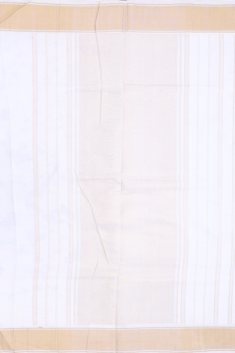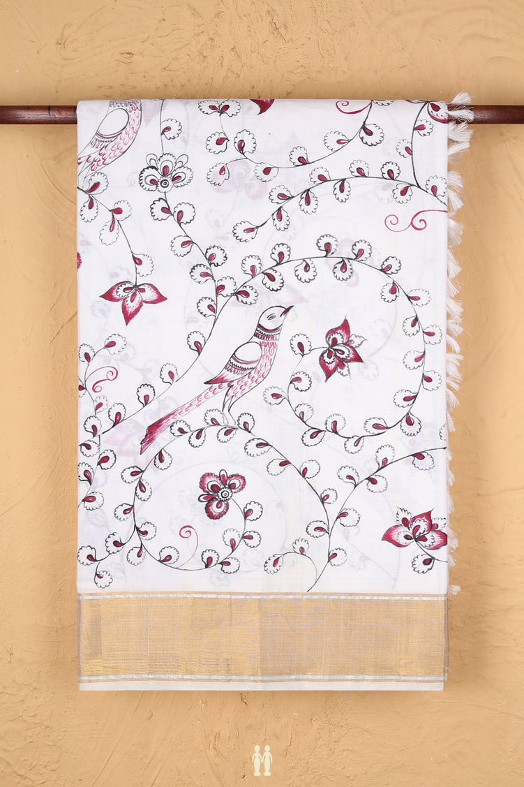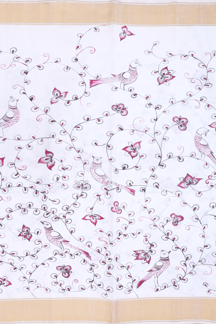 Kanchipuram Silk Saree In White With Floral Hand Painted