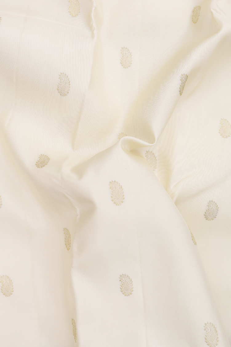 Kanchipuram Silk Saree In White With Paisley Buttas