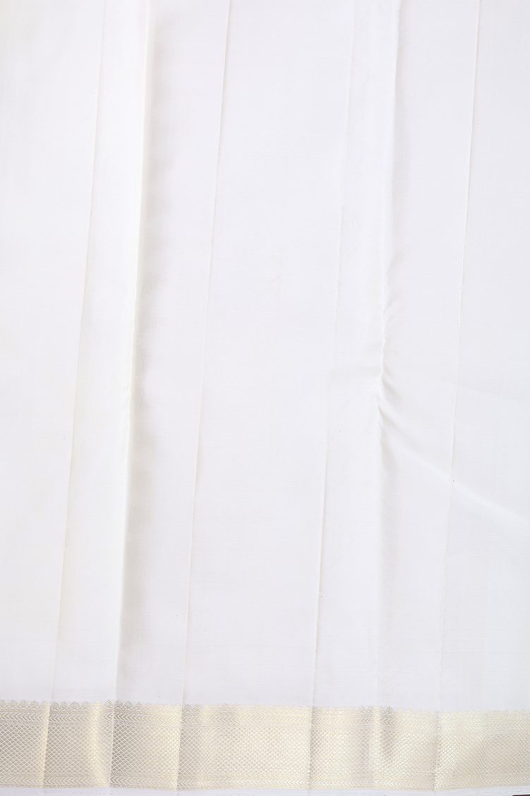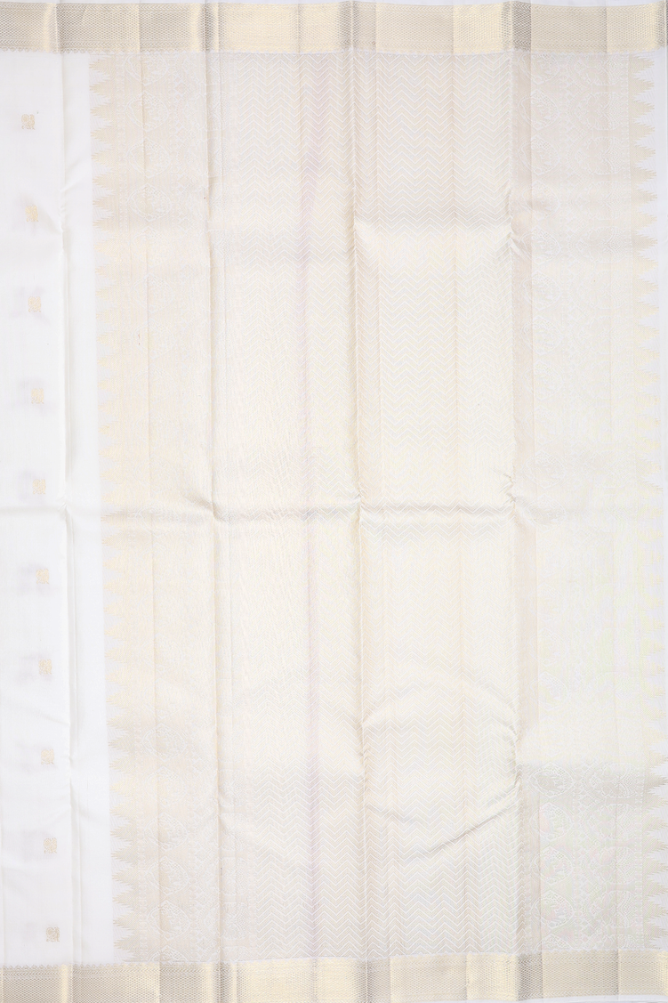 Kanchipuram Silk Saree In White With Peacock Chakram Buttas
