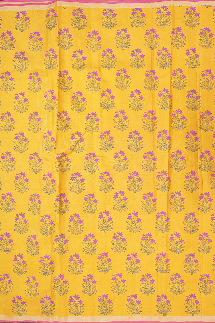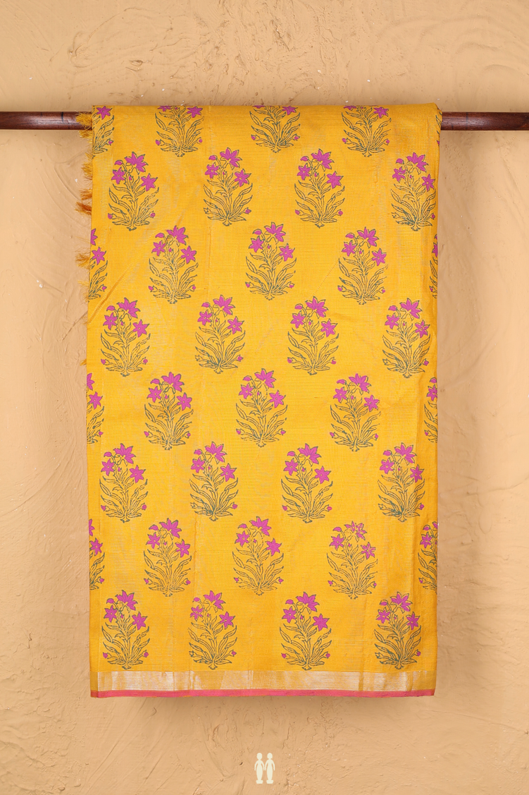 Kanchipuram Silk Saree In Yellow With Floral Printed Design