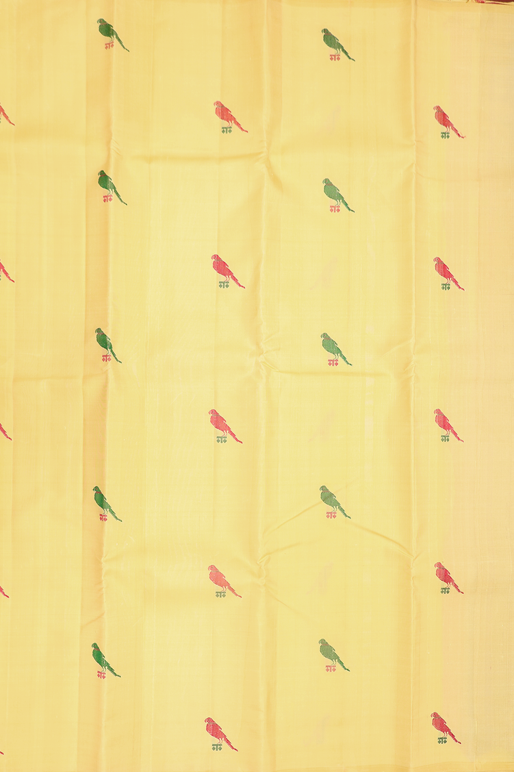 Kanchipuram Silk Saree In Yellow With Parrot Buttas