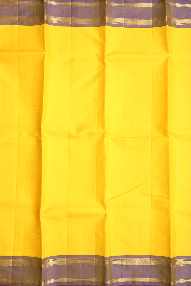 Kanchipuram Silk Saree In Yellow With Self Stripes Design