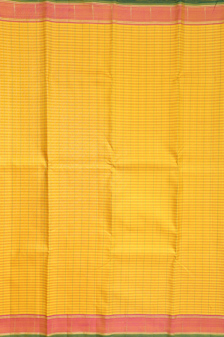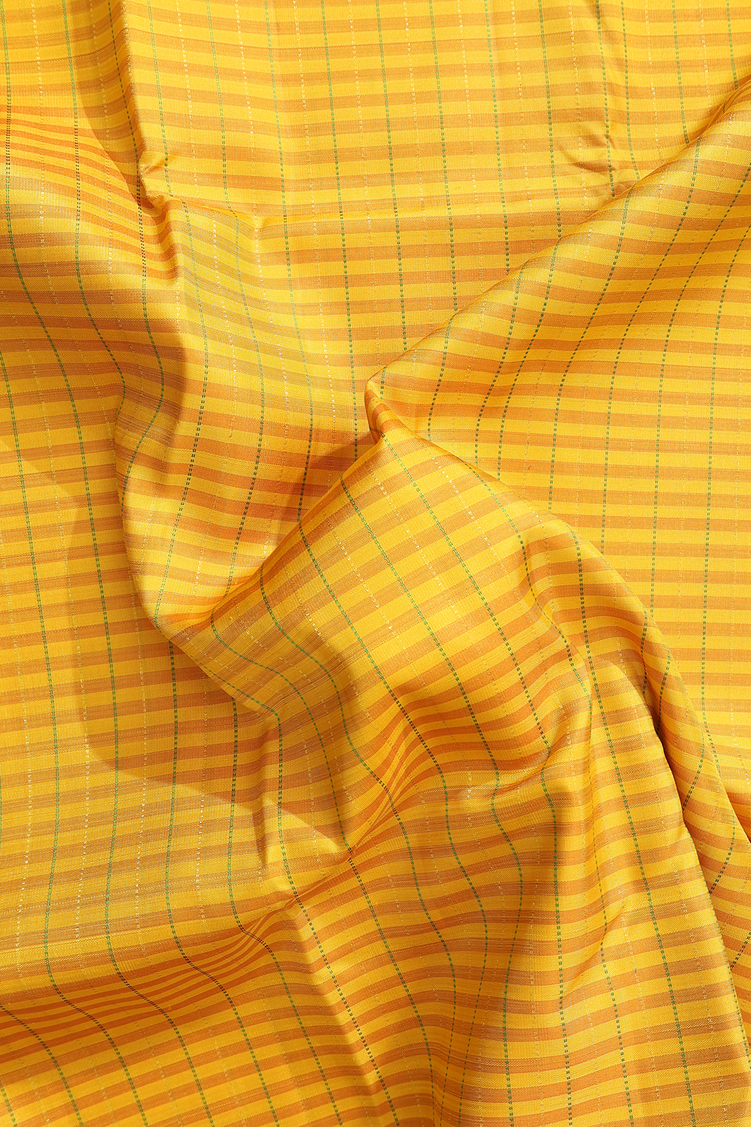 Kanchipuram Silk Saree In Yellow With Stripes Design