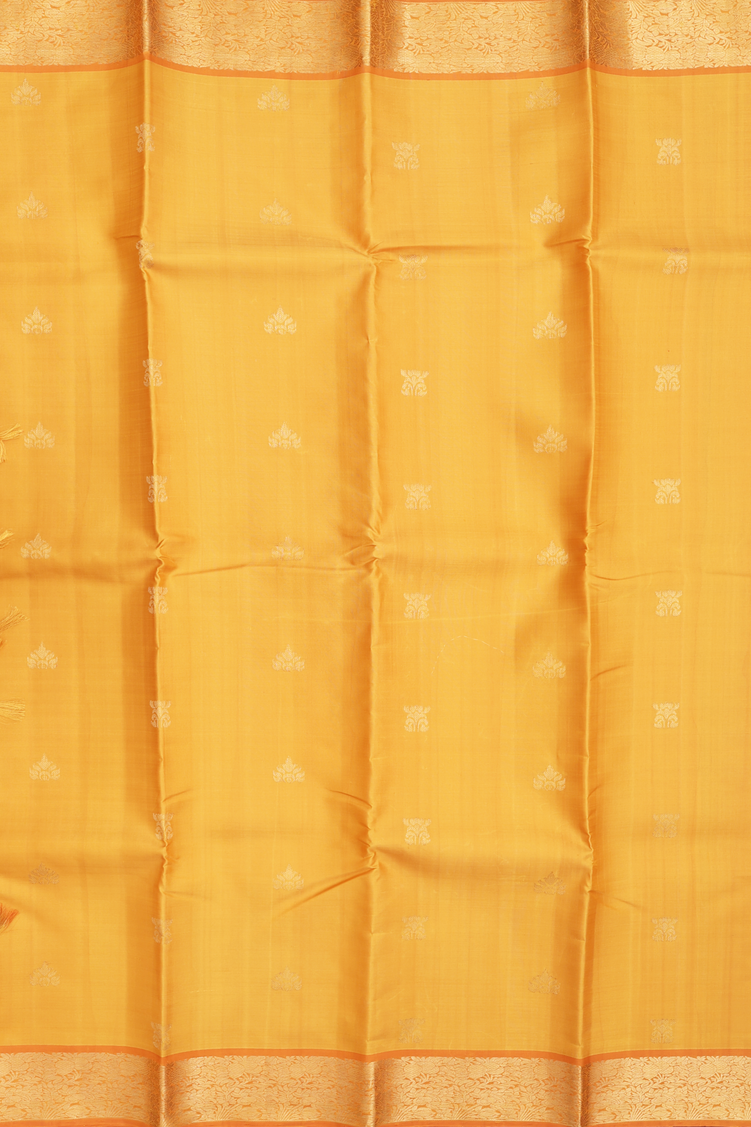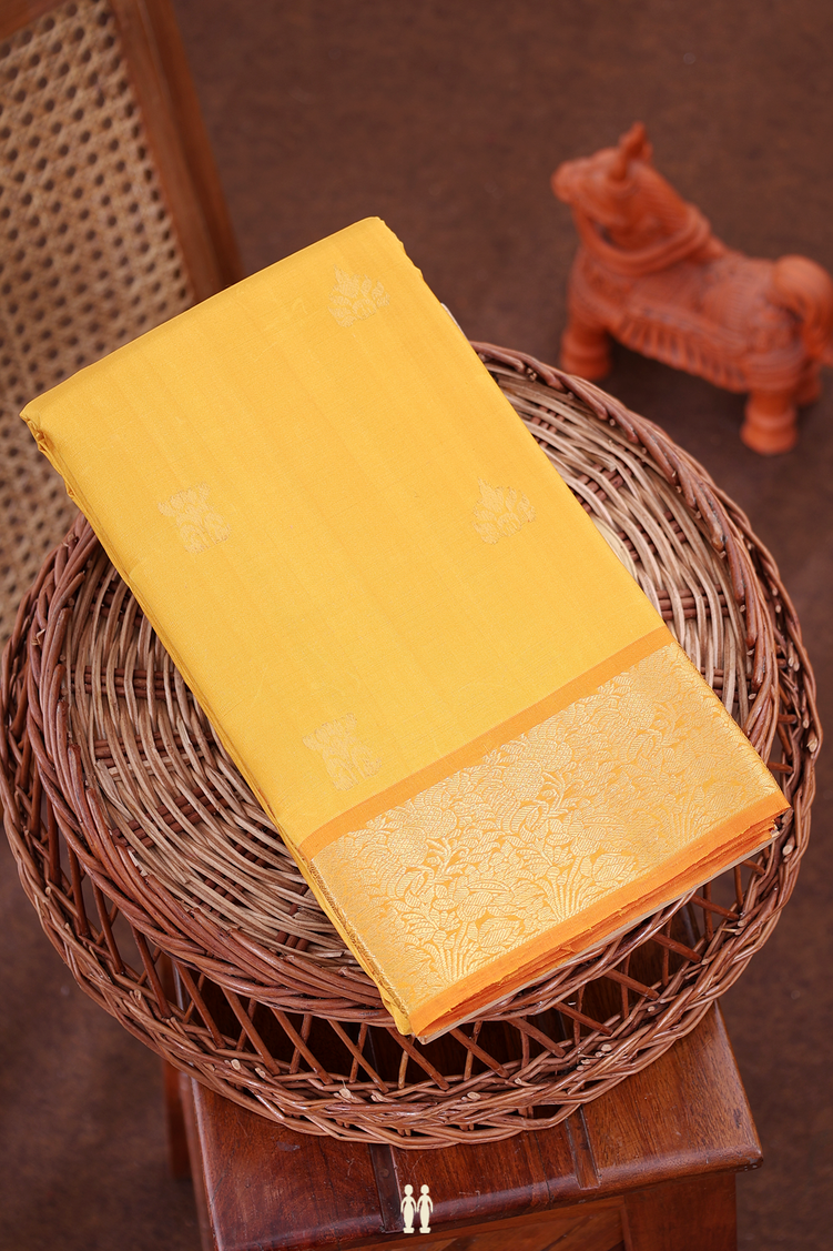 Kanchipuram Silk Saree In Yellow With Zari Buttas