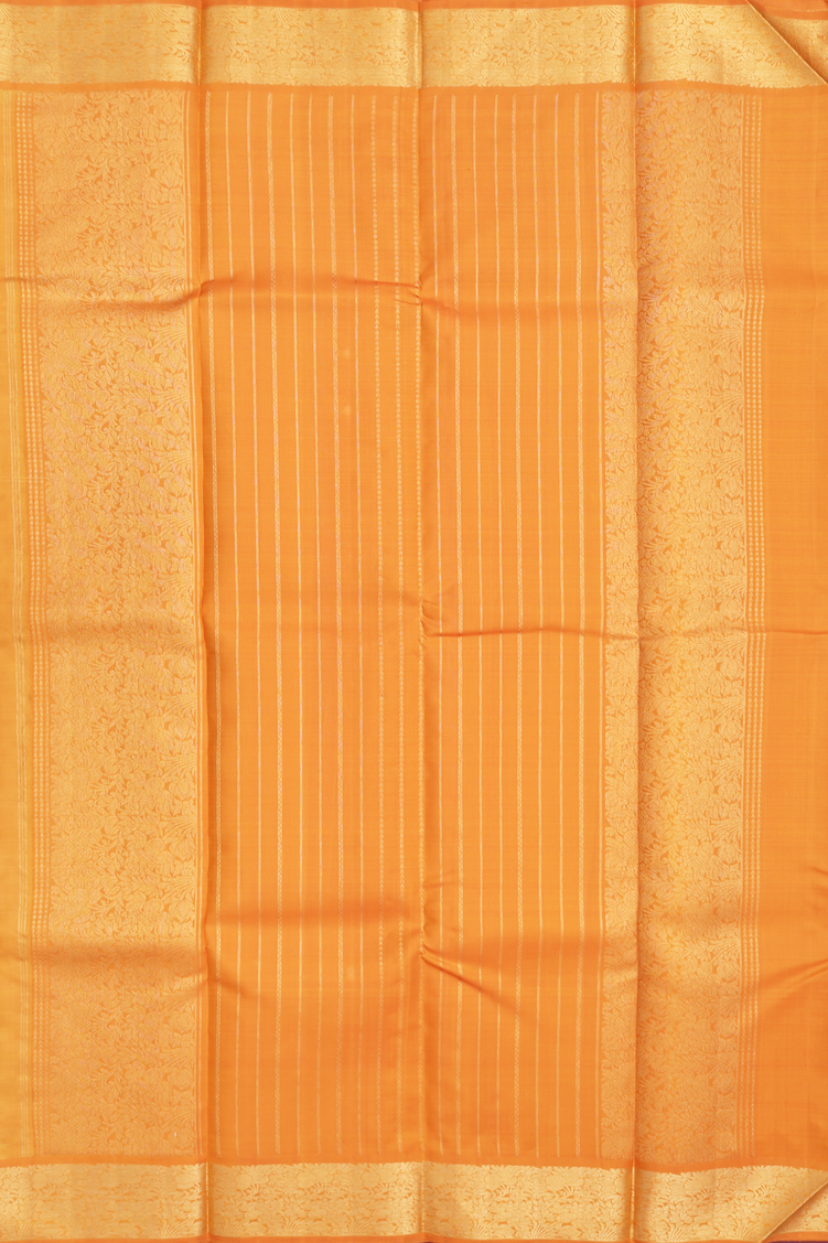 Elevate your elegance with this kanchipuram silk saree in vibrant yellow, adorned with intricate zari buttas that add a timeless shimmer. Crafted from premium silk, it offers a rich texture and graceful drape, perfect for special occasions. The subtle contrast of the delicate zari motifs enhances its traditional charm while maintaining a sophisticated appeal. This saree is a beautiful blend of heritage and refinement, destined to make a memorable statement wherever you wear it.