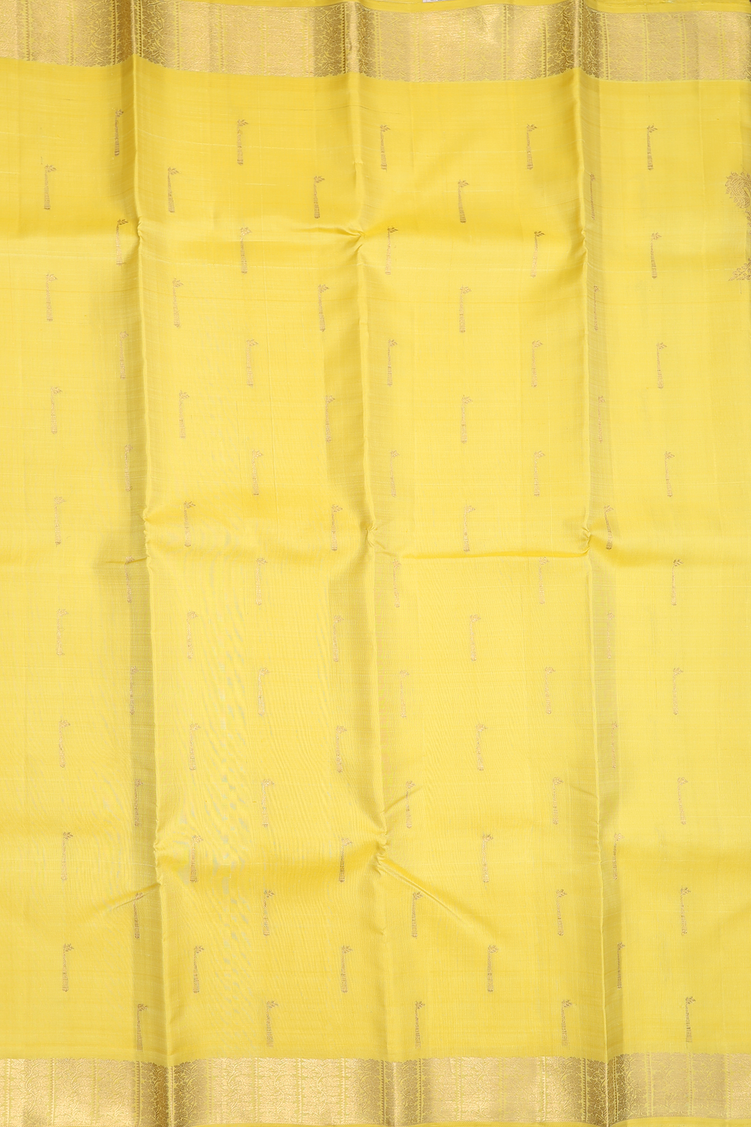 Kanchipuram Silk Saree In Yellow With Zari Buttas