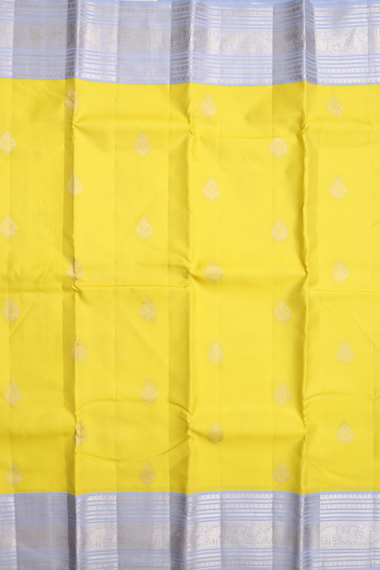 Kanchipuram Silk Saree In Yellow With Zari Buttas