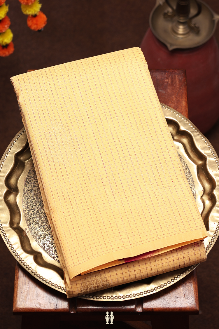 Kanchipuram Silk Saree Melon Orange With Checks Along Buttas