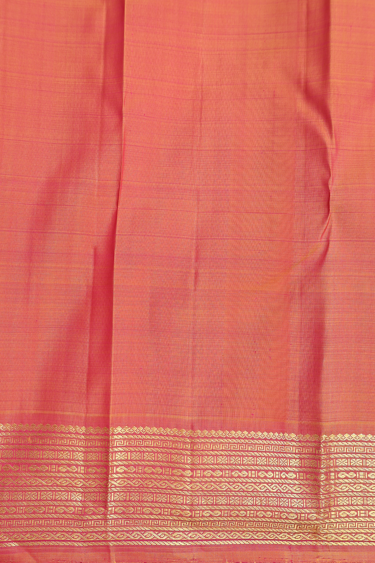 Kanchipuram Silk Saree Orange And Magenta With Checks Design