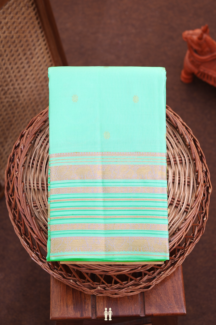 Kanchipuram Silk Saree In Pastel Sea Green With Floral Buttis