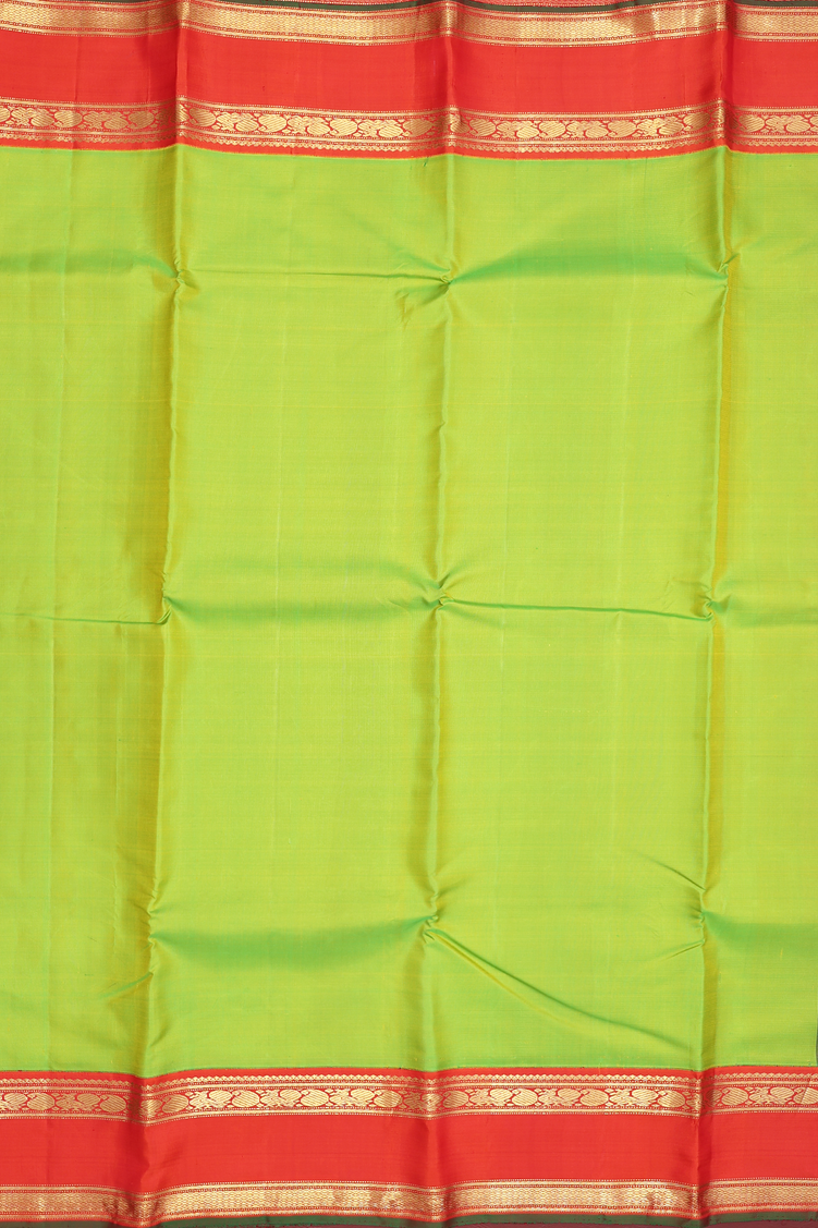 Kanchipuram Silk Saree Plain Lime Green With Contrast Border