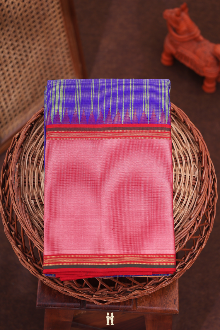 Kanchipuram Silk Saree Purple And Green With Stripes Design