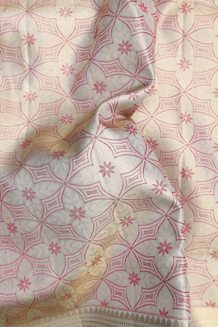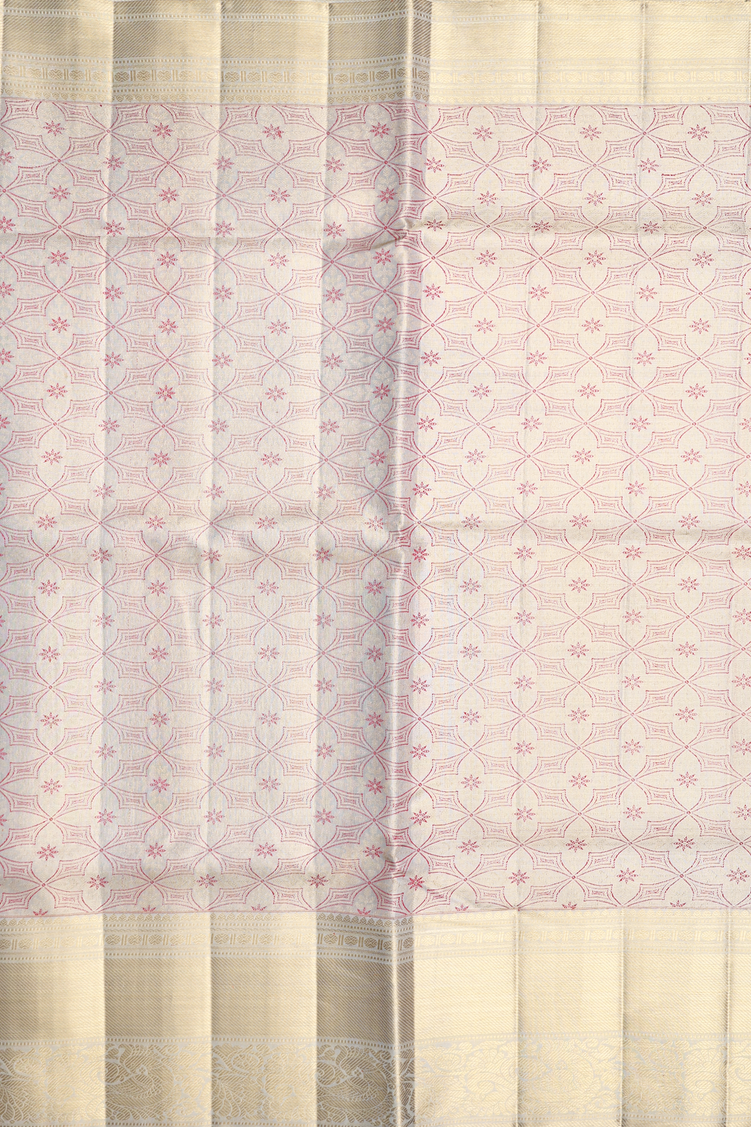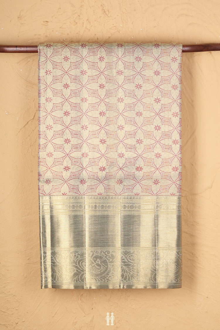 Kanchipuram Silk Saree Tissue Green Beige With Allover Design