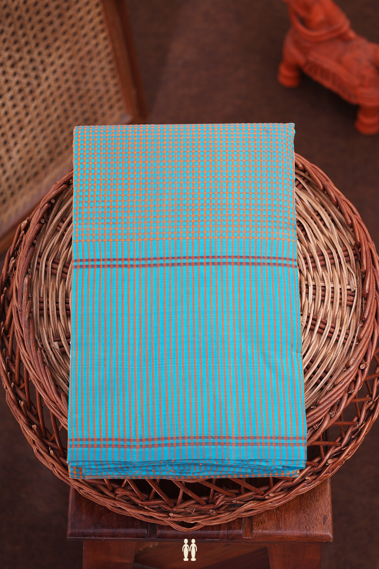 Koorainadu Silk Cotton Saree Blue And Orange With Checks