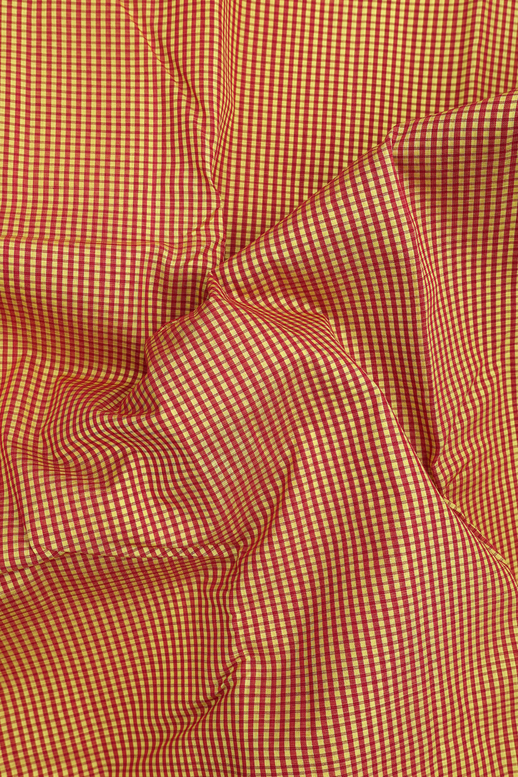 Koorainadu Silk Cotton Saree In Red And Yellow With Checks