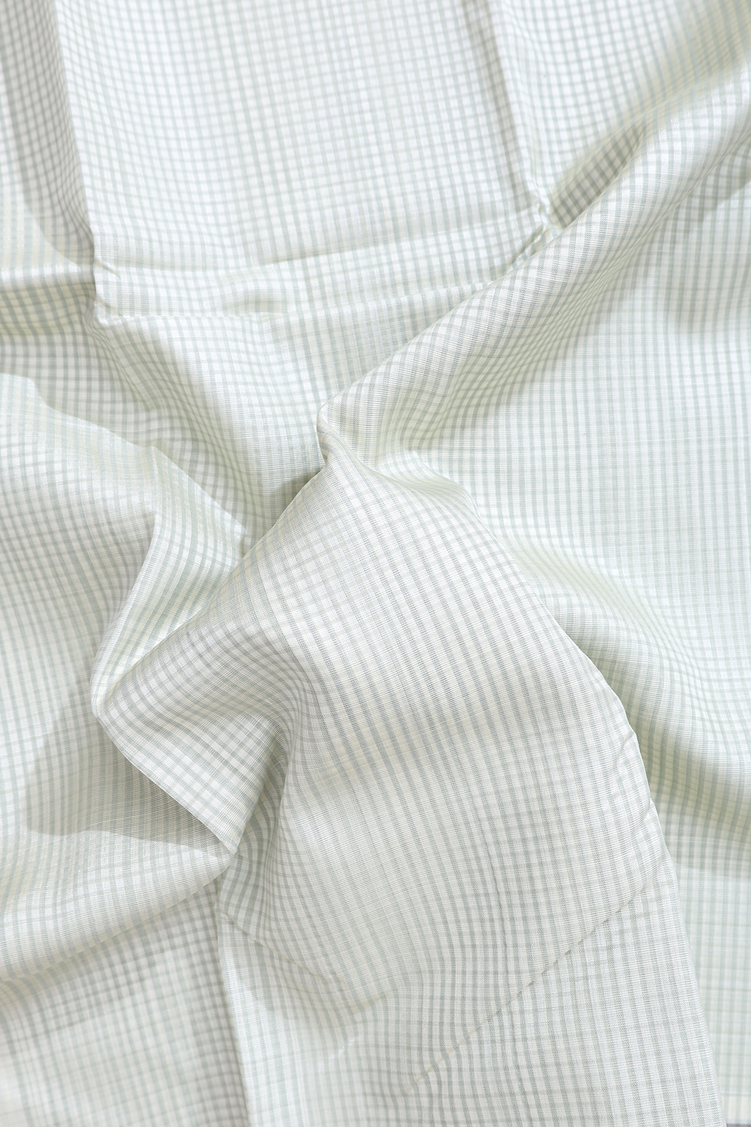 Elevate your everyday elegance with this koorainadu silk cotton saree, a harmonious blend of comfort and refined style. The crisp white and grey checked pattern creates a timeless aesthetic that transitions seamlessly from casual gatherings to formal occasions. Crafted from a luxurious silk-cotton blend, this saree offers the breathability of cotton with the lustrous sheen of silk, ensuring you remain comfortable throughout the day. The geometric check design adds visual interest while maintaining an understated sophistication. Perfect for those who appreciate classic patterns with contemporary appeal, this saree is a versatile addition to any wardrobe.