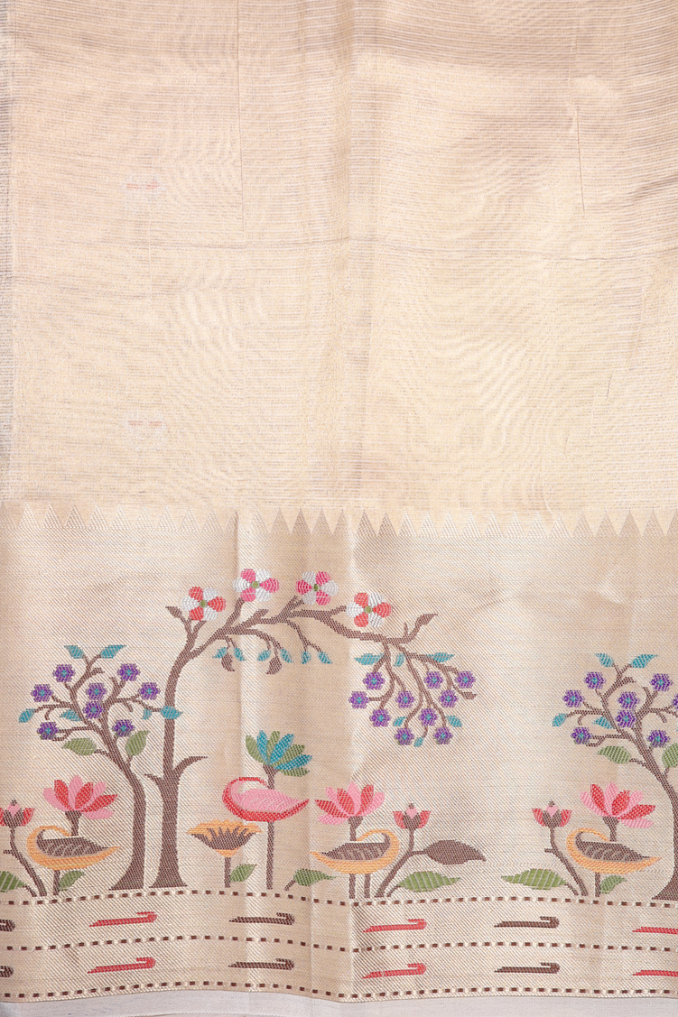 Kora Banarasi Silk Saree In Brown Tissue With Floral Buttas