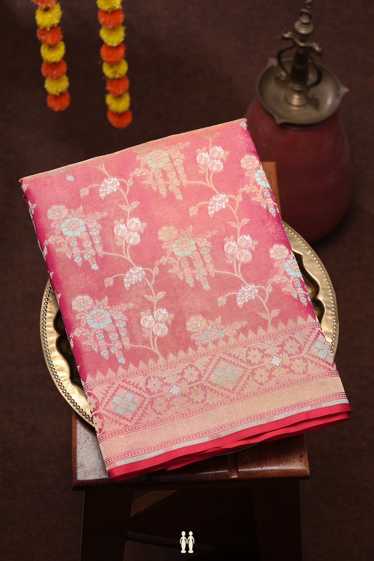 Kora Banarasi Silk Saree In Pink Tissue With Floral Design