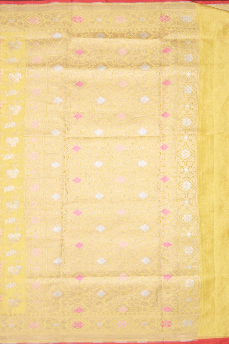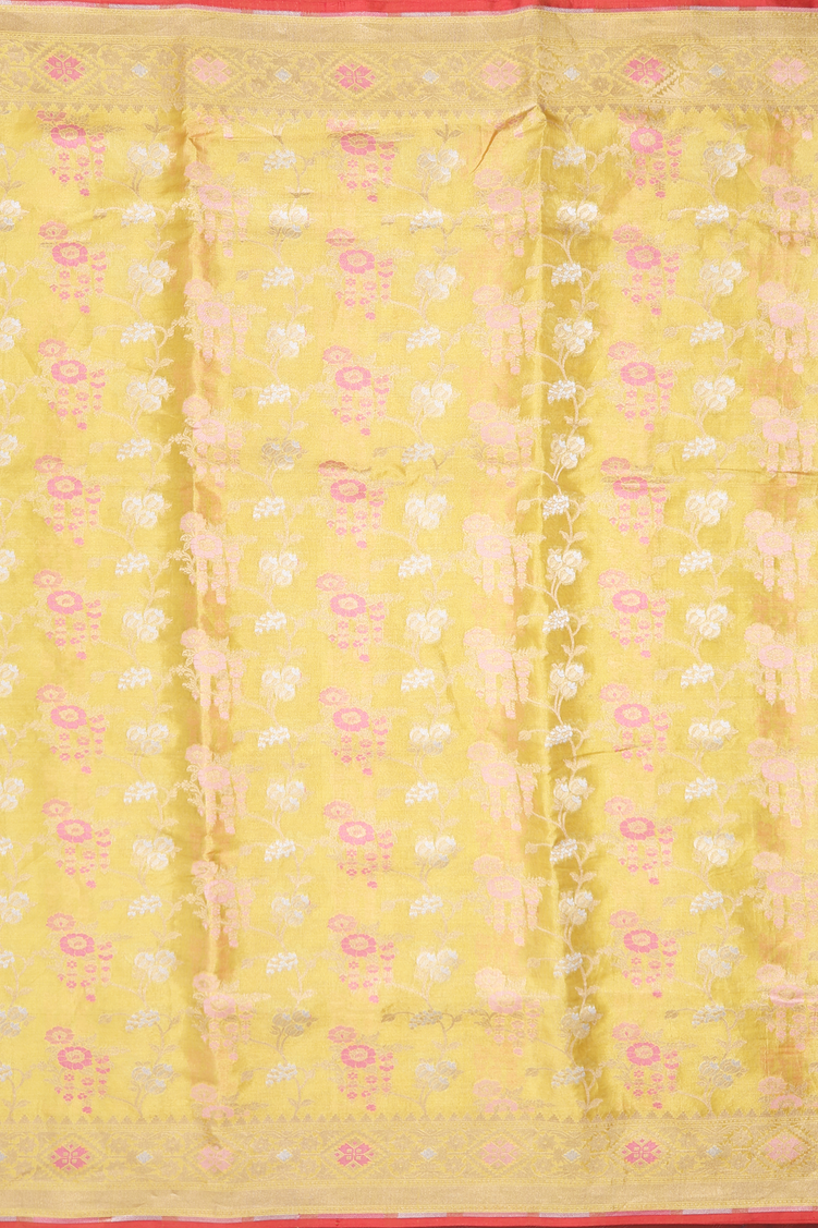 Kora Banarasi Silk Saree In Yellow Tissue With Floral Design