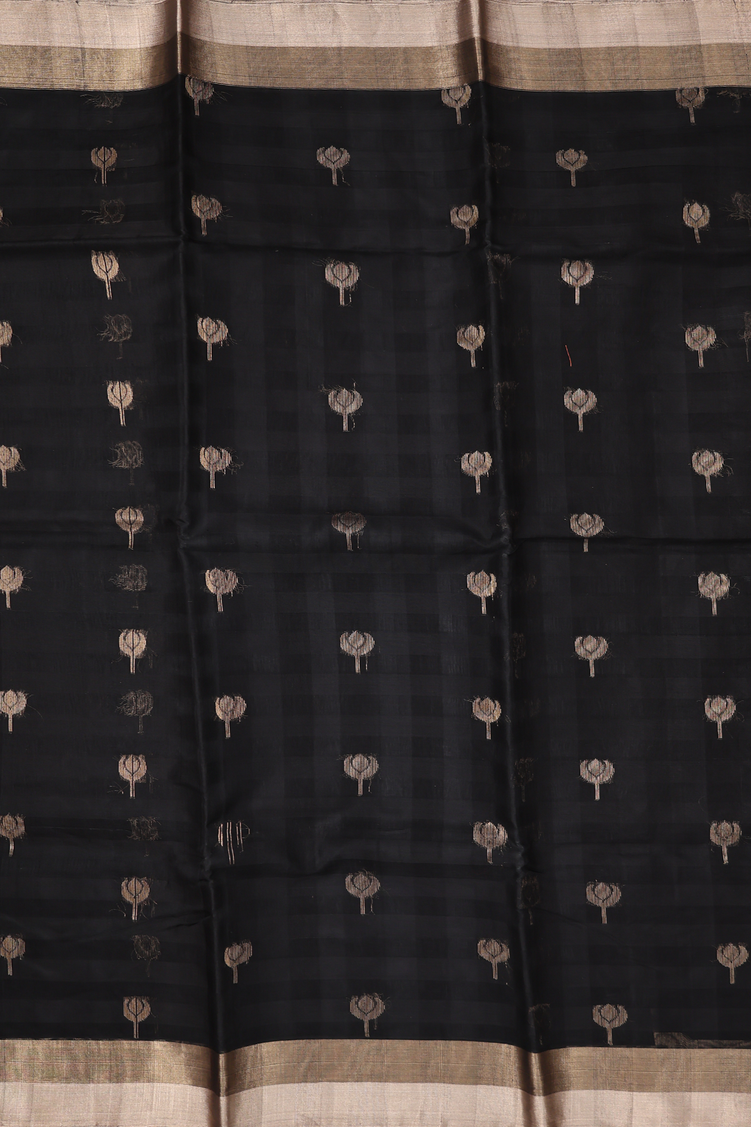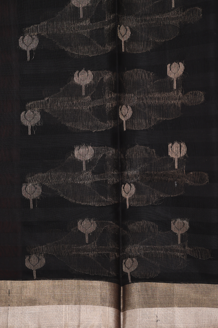 Kora Silk Cotton Saree In Black With Floral Buttas