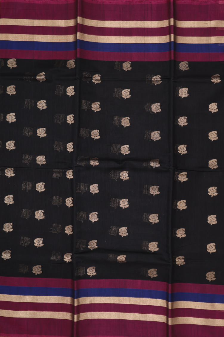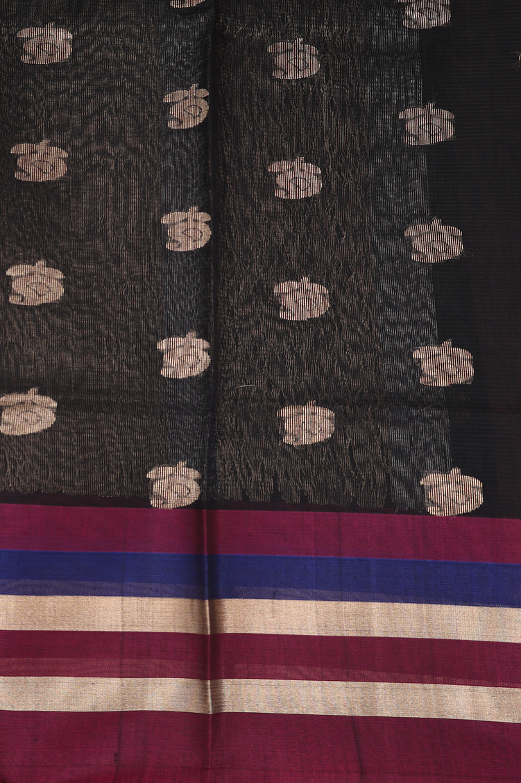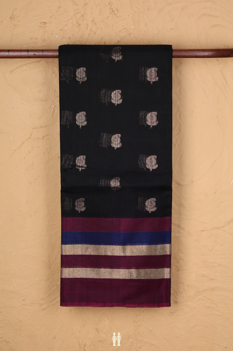 Kora Silk Cotton Saree In Black With Paisley Buttas