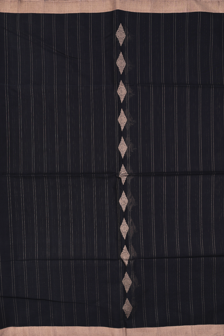 Kora Silk Cotton Saree In Black With Stripes Design