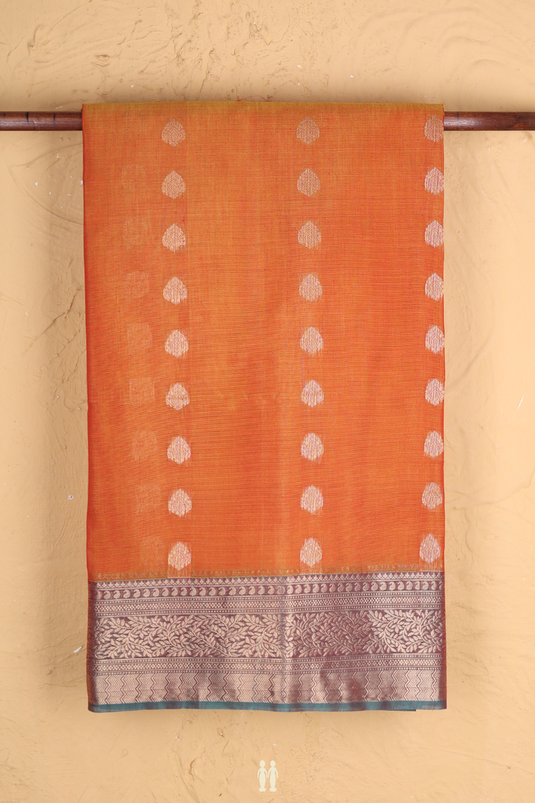Kora Silk Cotton Saree In Dual Tone With Zari Buttas