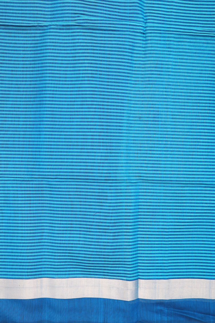 Kora Silk Cotton Saree In Deep Sky Blue With Stripes Design