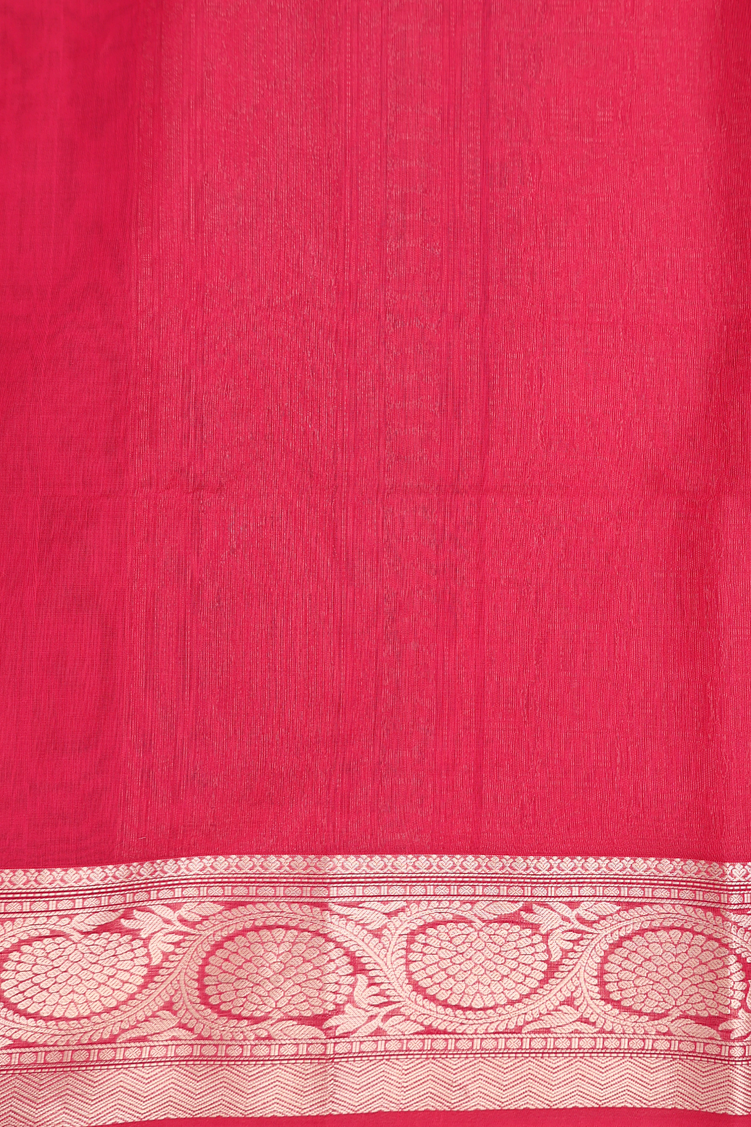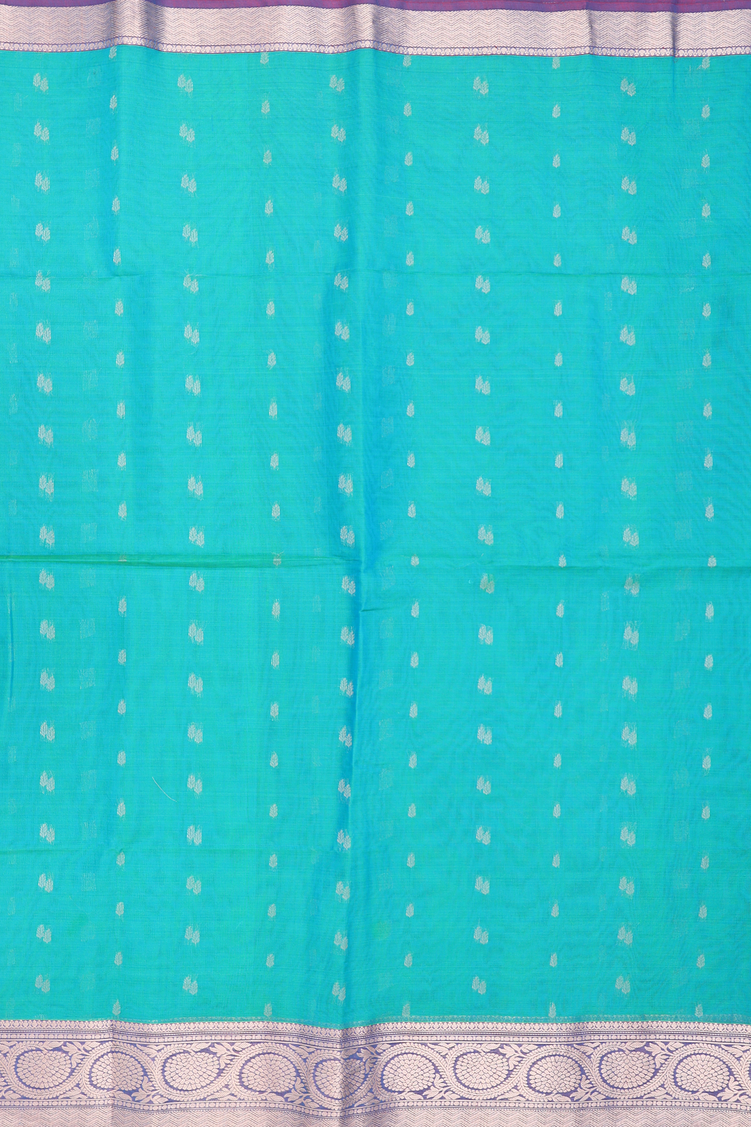 Kora Silk Cotton Saree In Peacock Blue With Zari Buttas