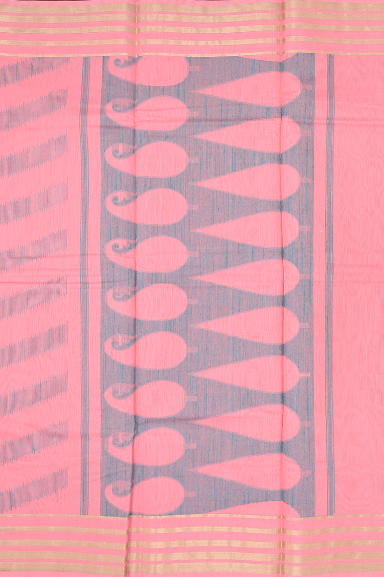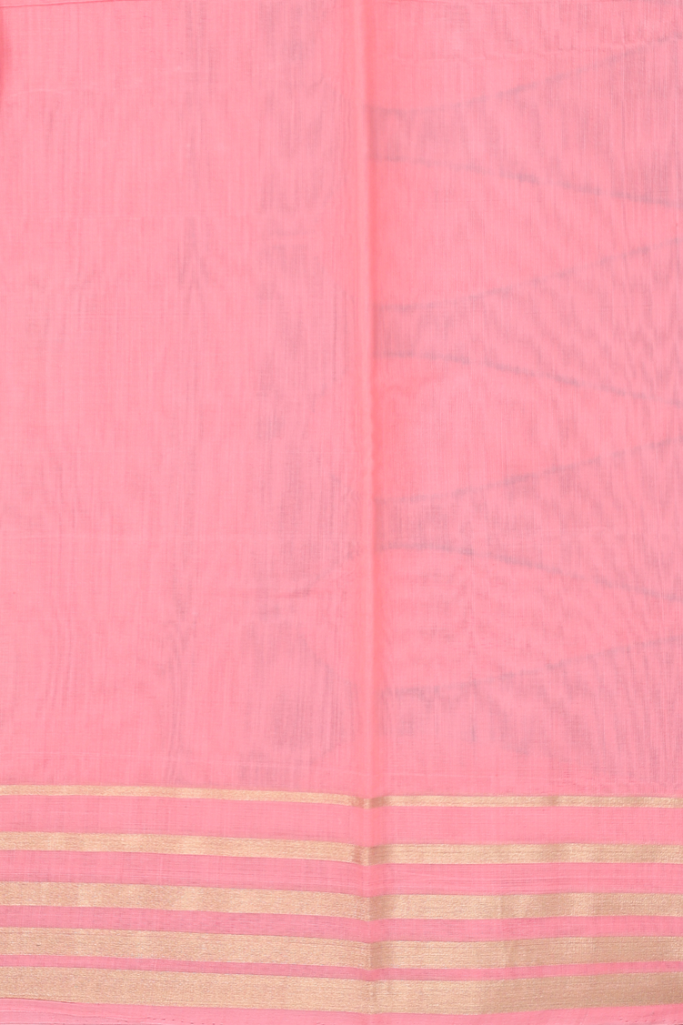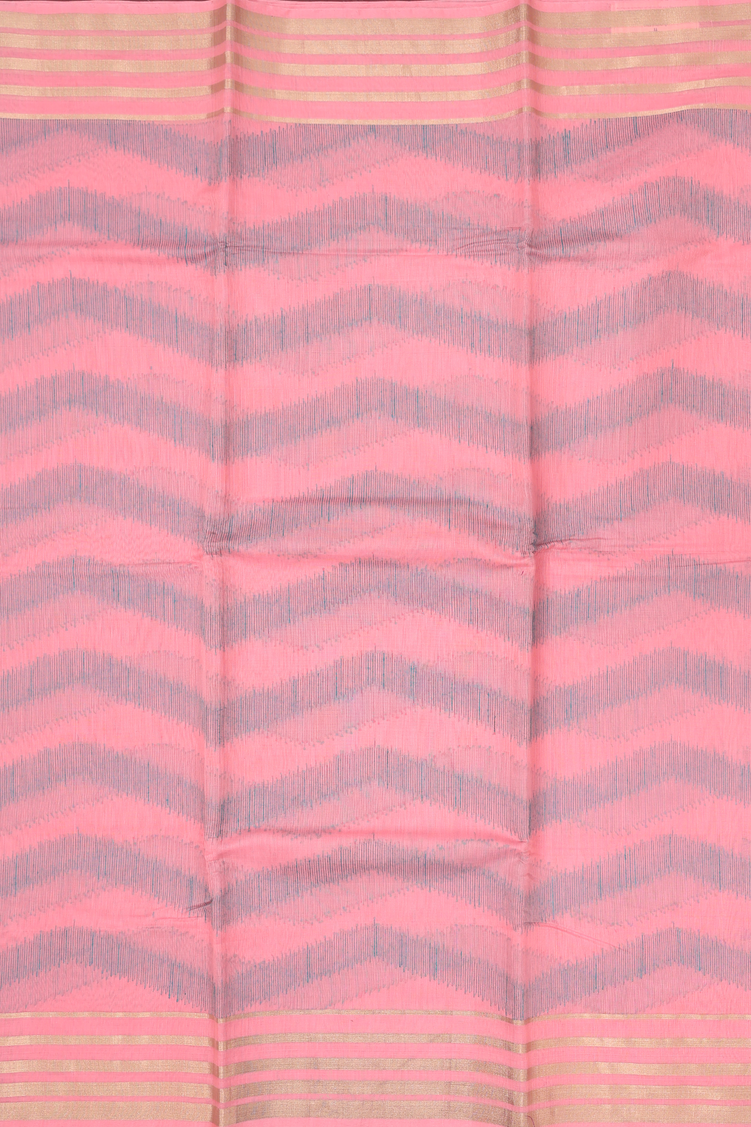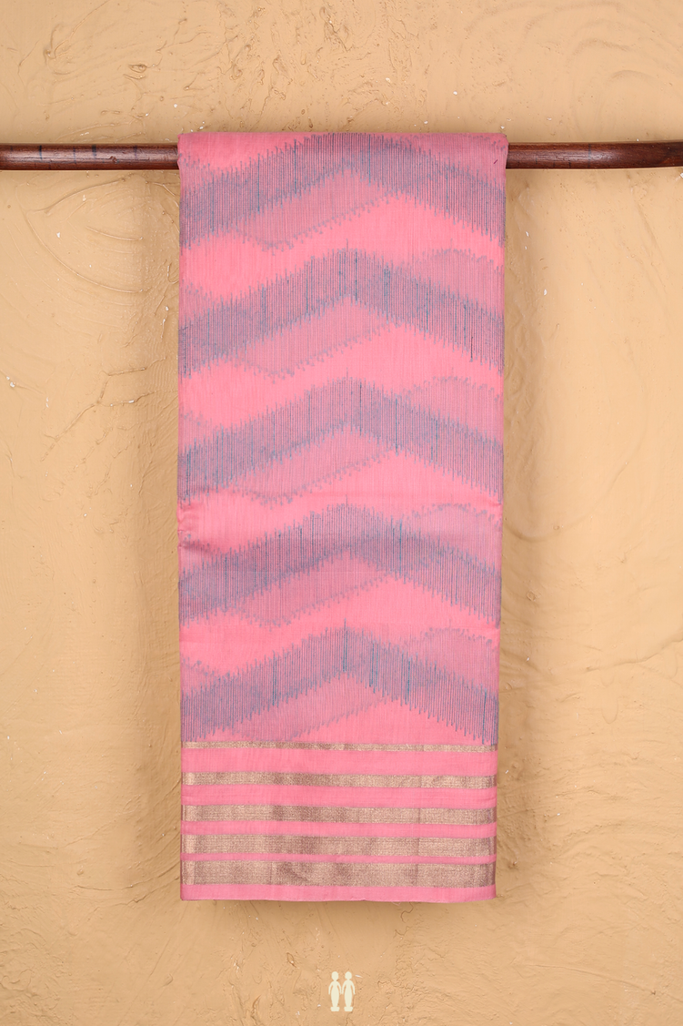 Kora Silk Cotton Saree In Pink With Chevron Design