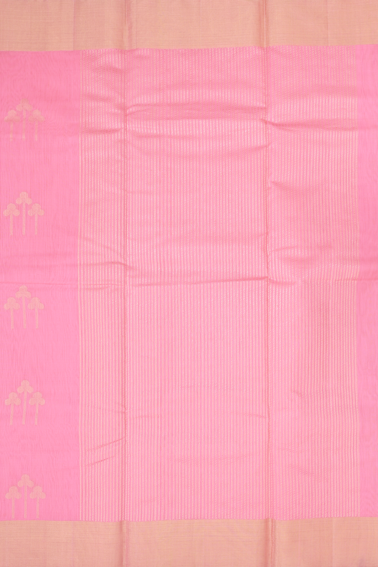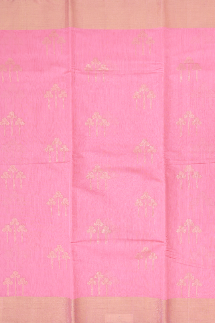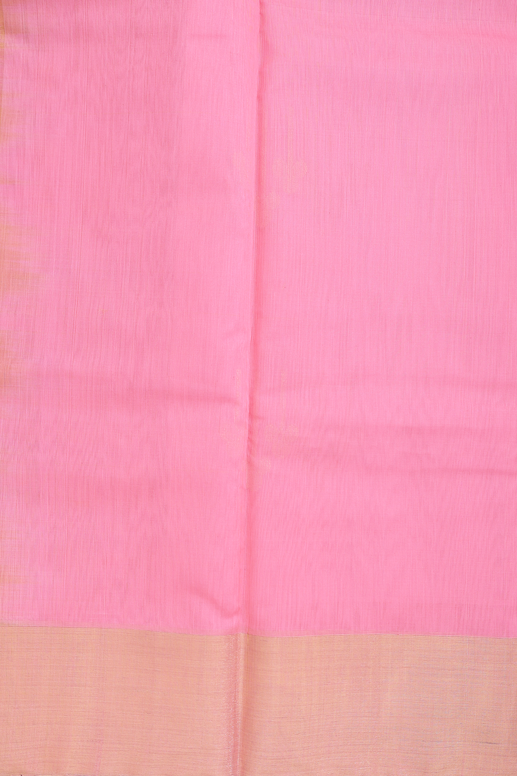 Kora Silk Cotton Saree In Pink With Floral Motifs