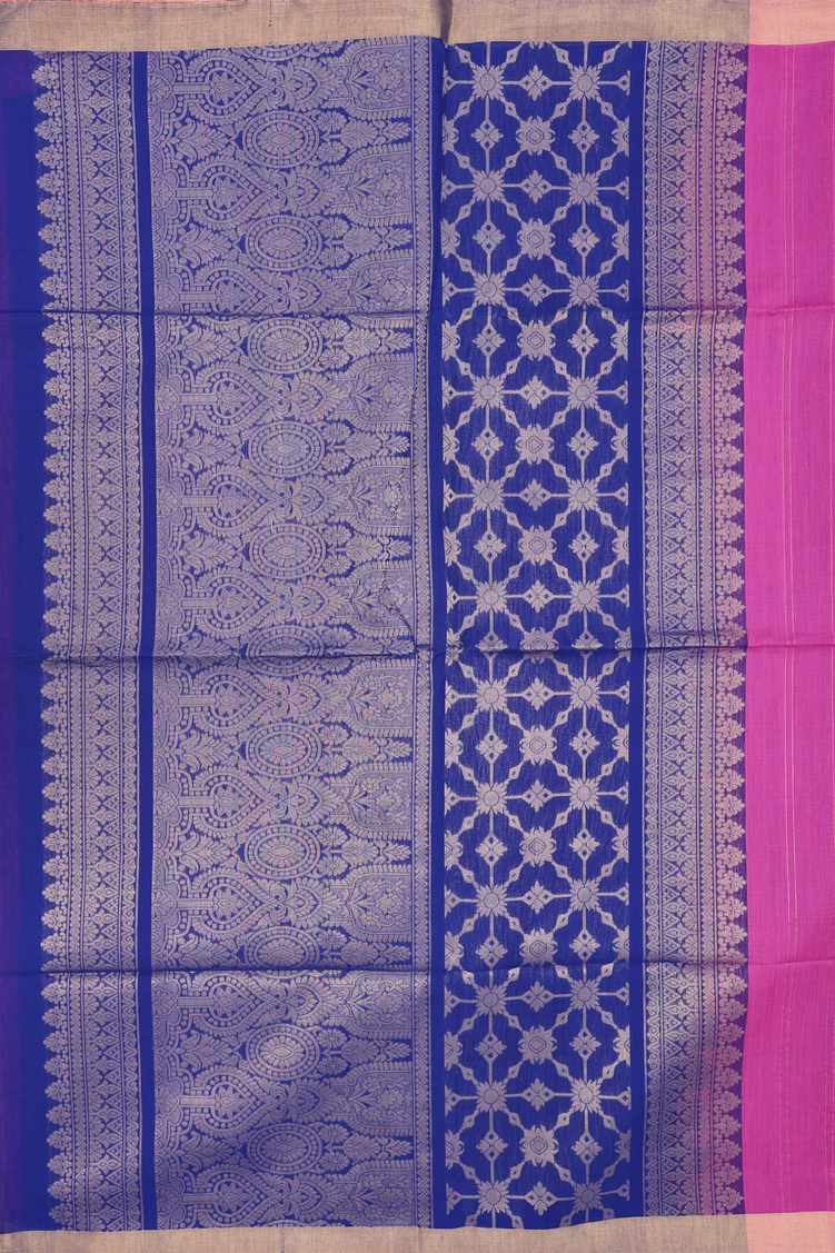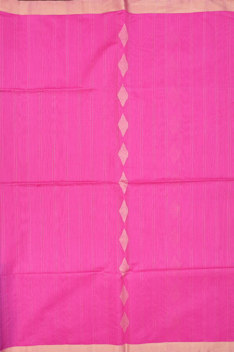 Kora Silk Cotton Saree In Pink With Stripes Design