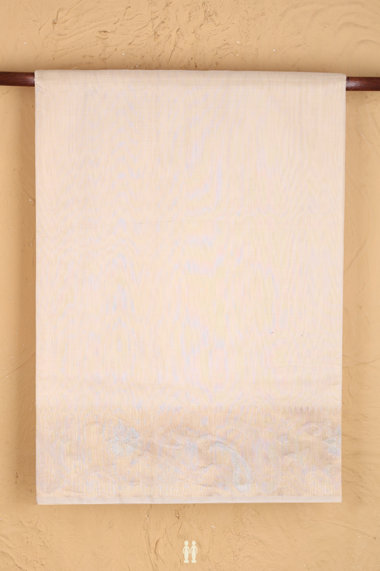 Kora Silk Cotton Saree In Plain Ivory With Paisley Border