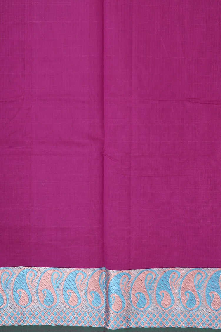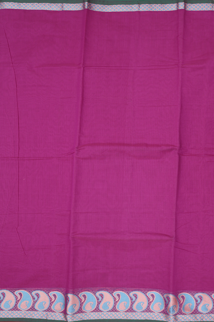 Kora Silk Cotton Saree In Plain Purple With Paisley Border