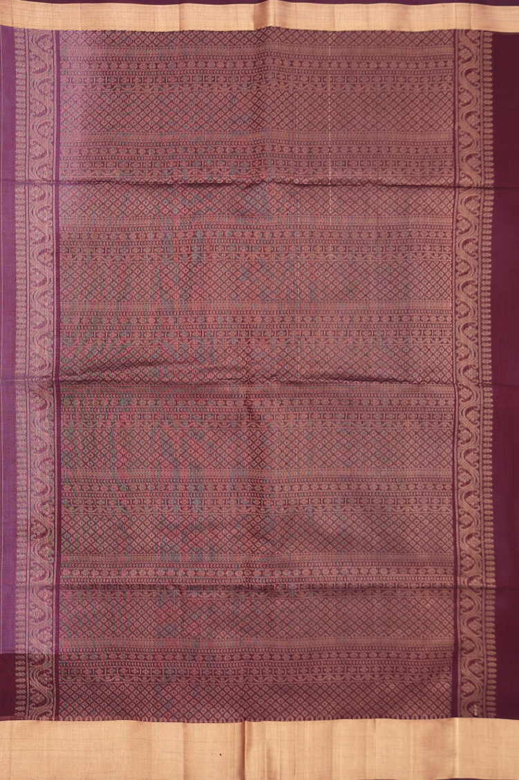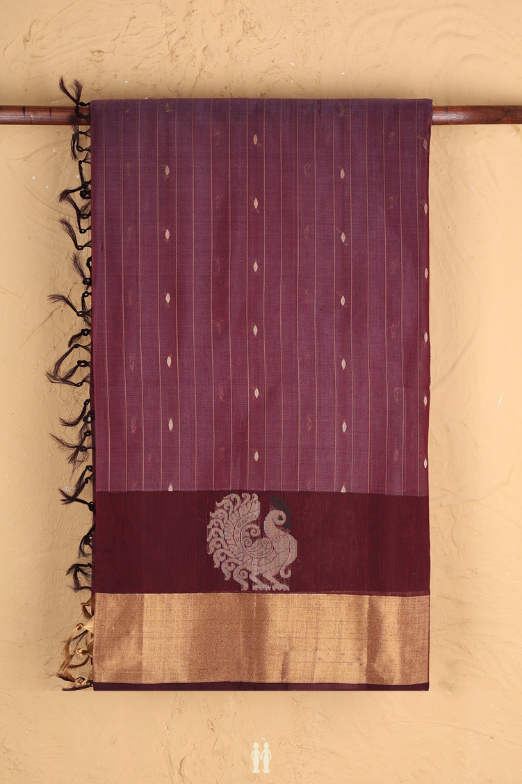Kora Silk Cotton Saree In Plum Brown With Stripes Design