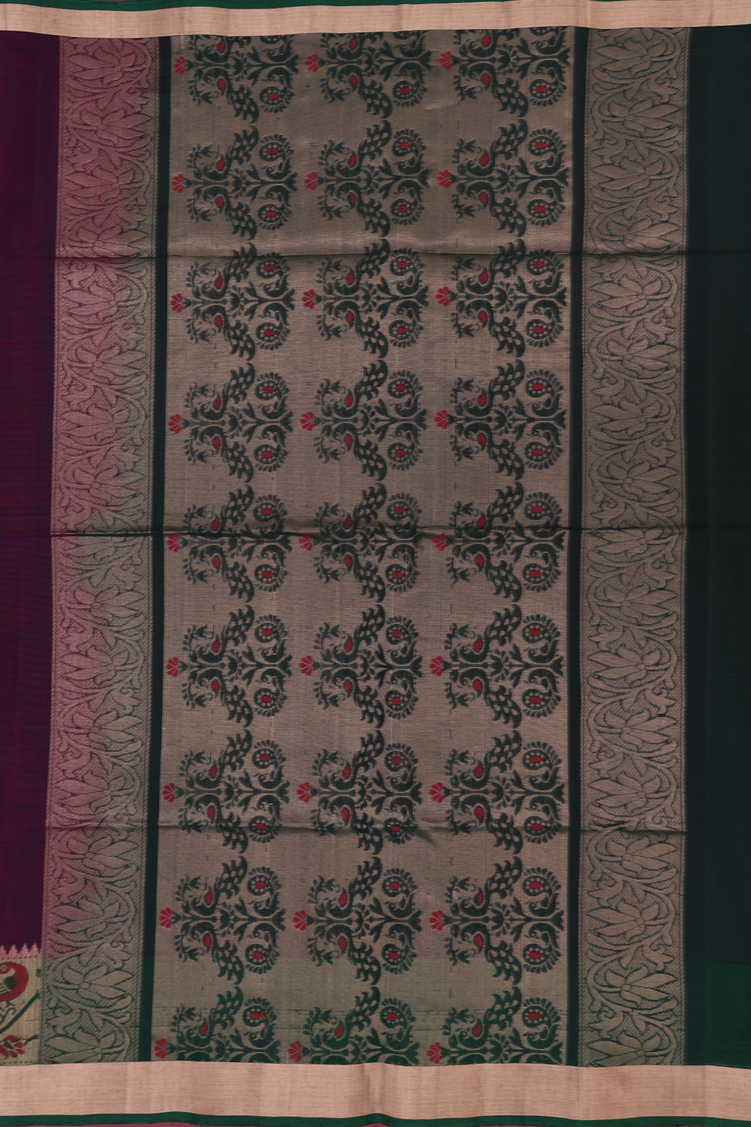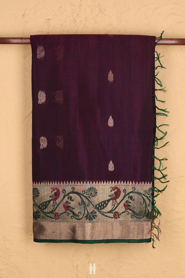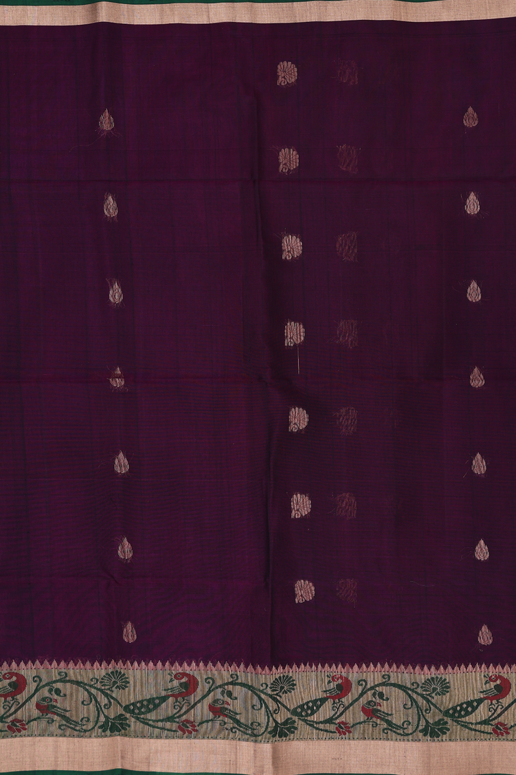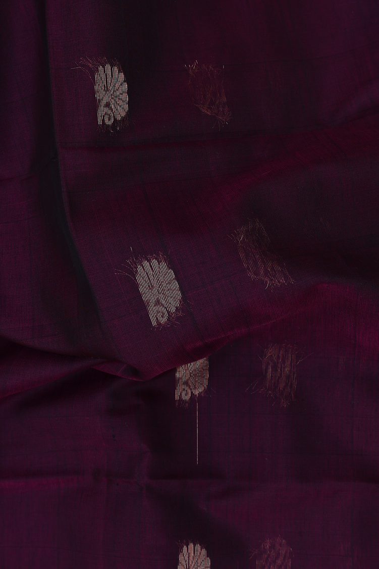 Kora Silk Cotton Saree In Plum Purple With Floral Buttas