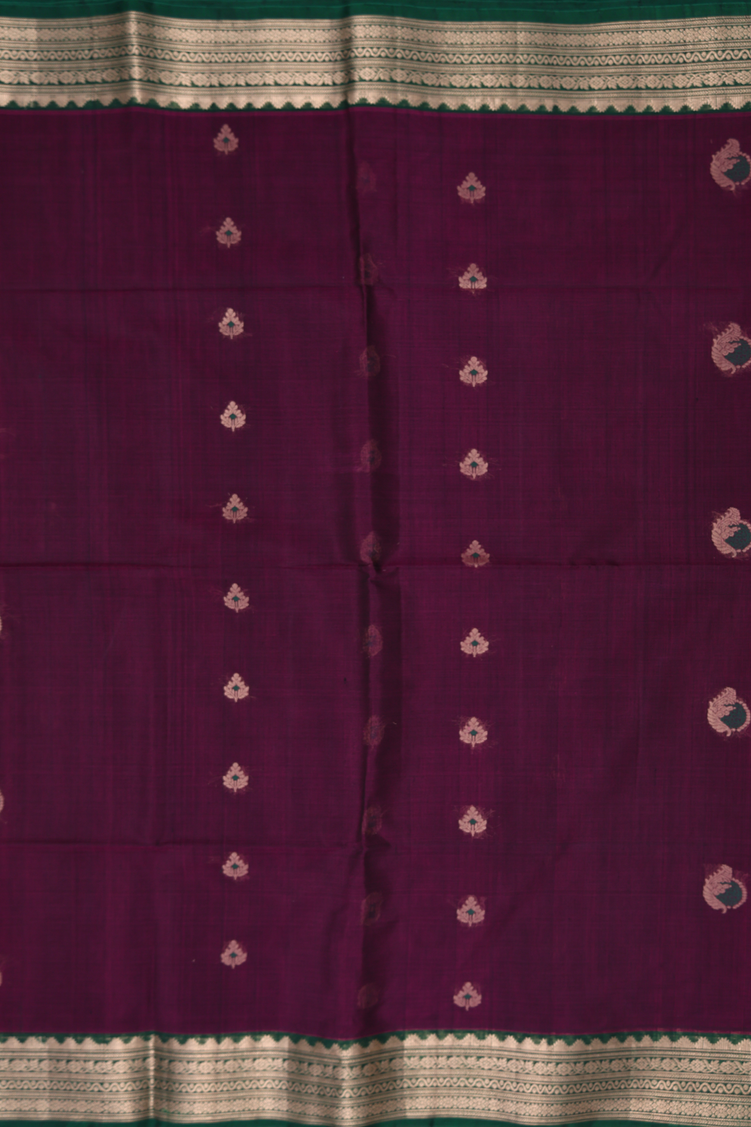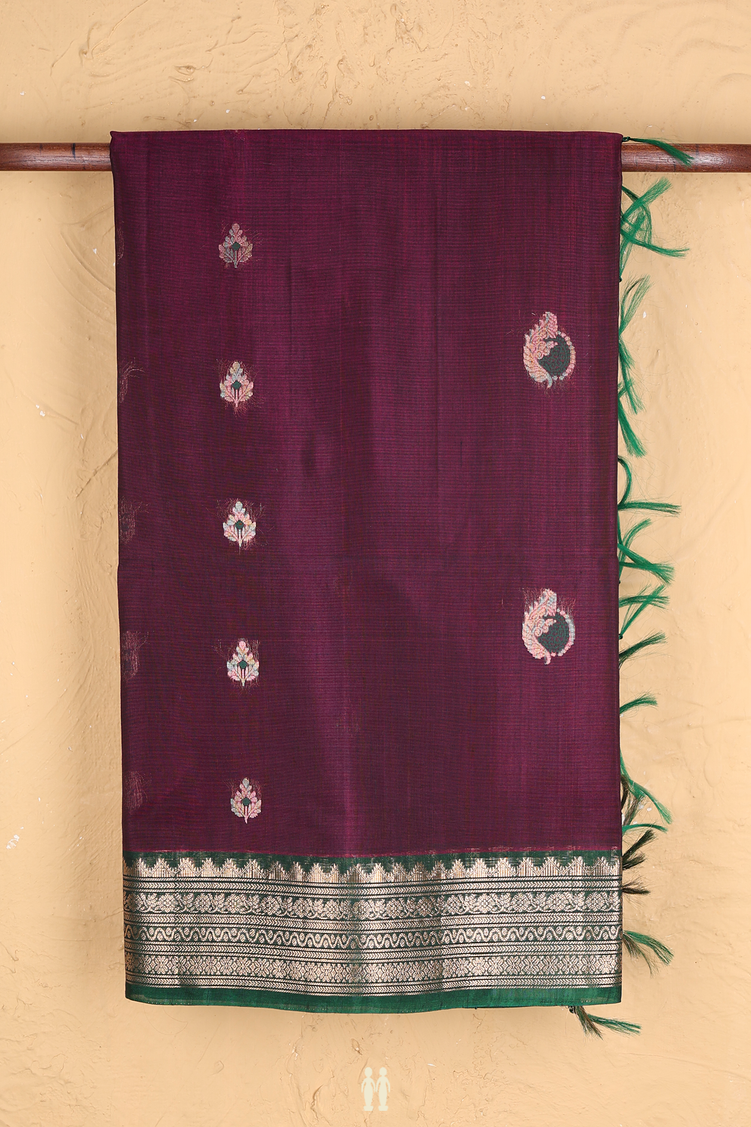 Kora Silk Cotton Saree In Plum Purple With Zari Buttas
