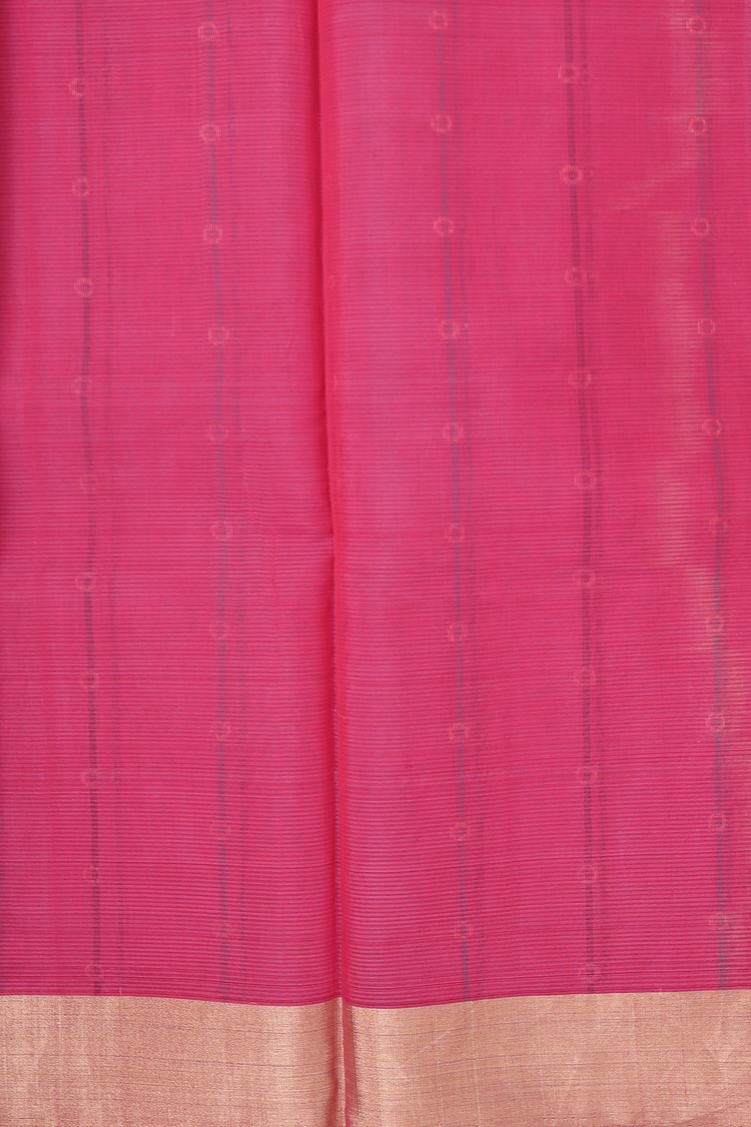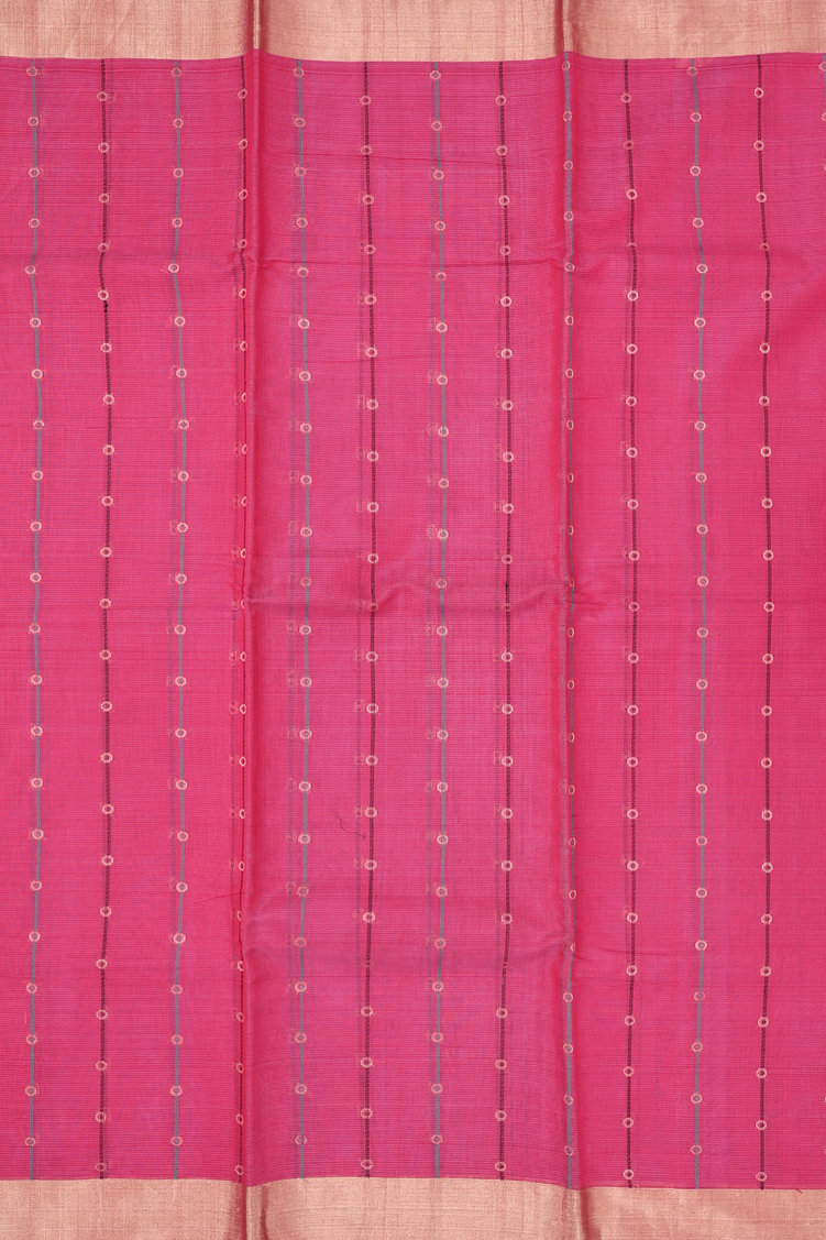 Kora Silk Cotton Saree In Rani Pink With Stripes Design