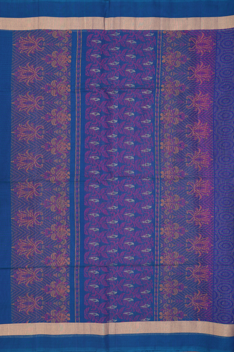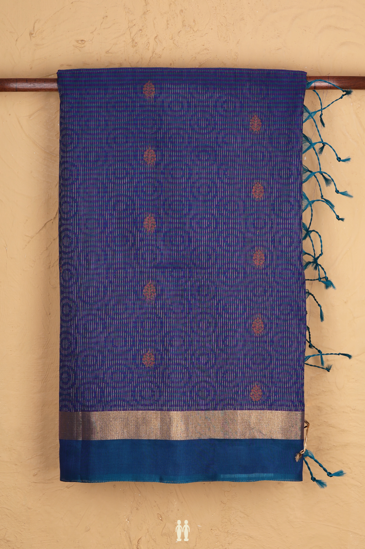 Kora Silk Cotton Saree In Royal Blue With Allover Design