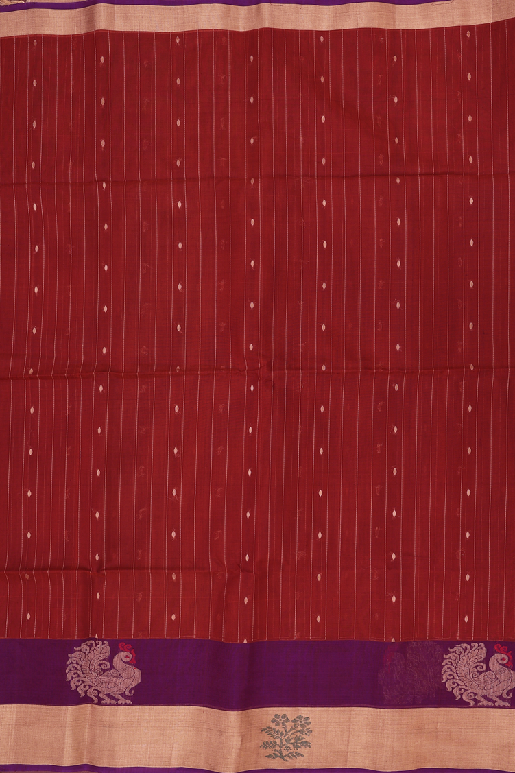 Kora Silk Cotton Saree In Rust Red With Stripes Design