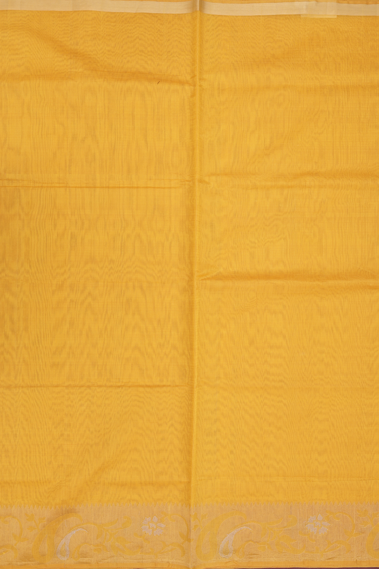 Kora Silk Cotton Saree In Saffron Yellow With Paisley Border