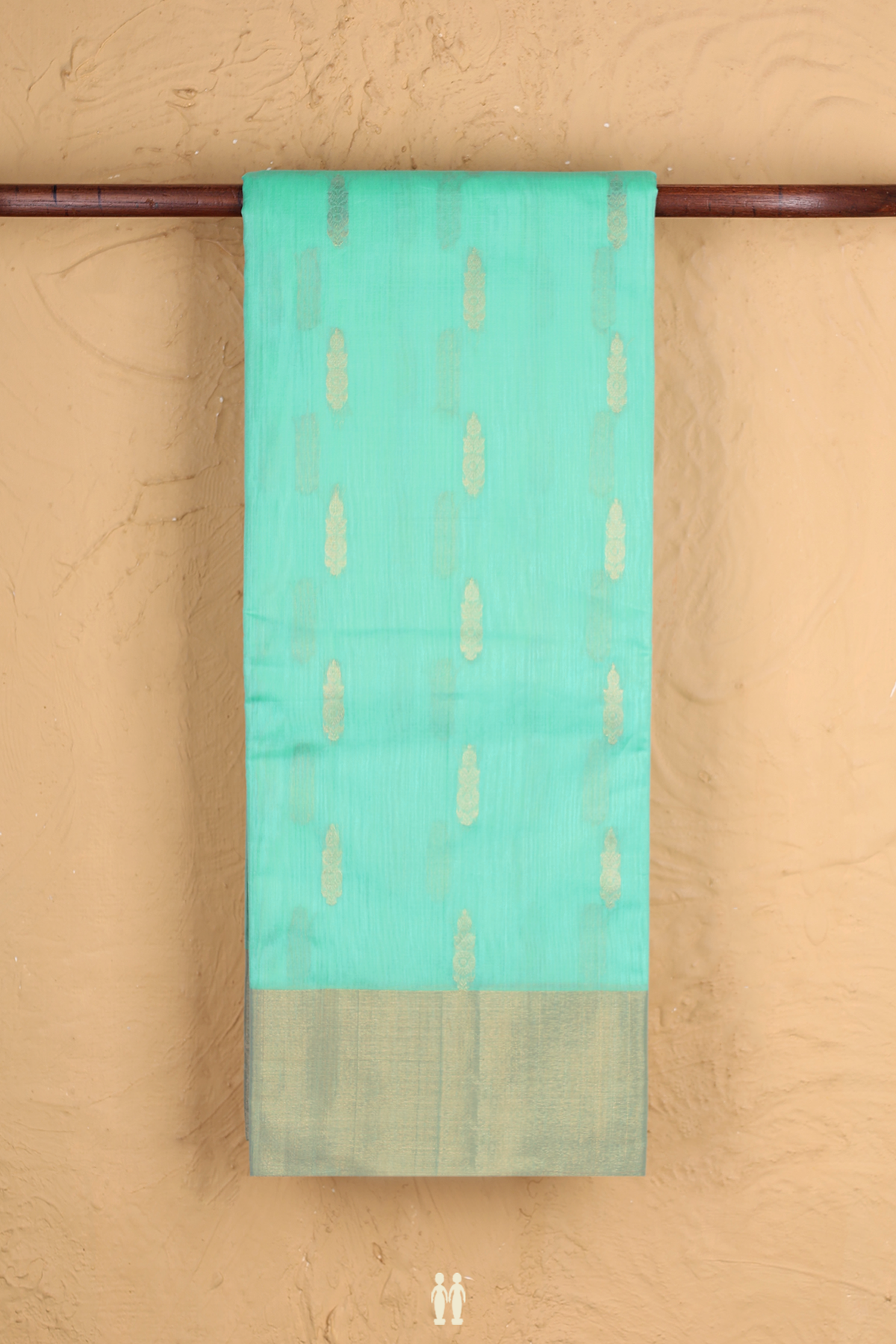 Kora Silk Cotton Saree In Tiffany Blue With Floral Buttas