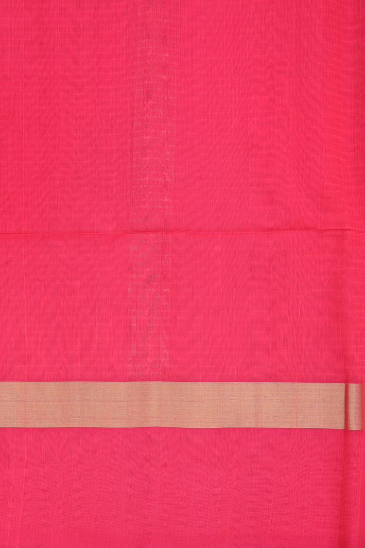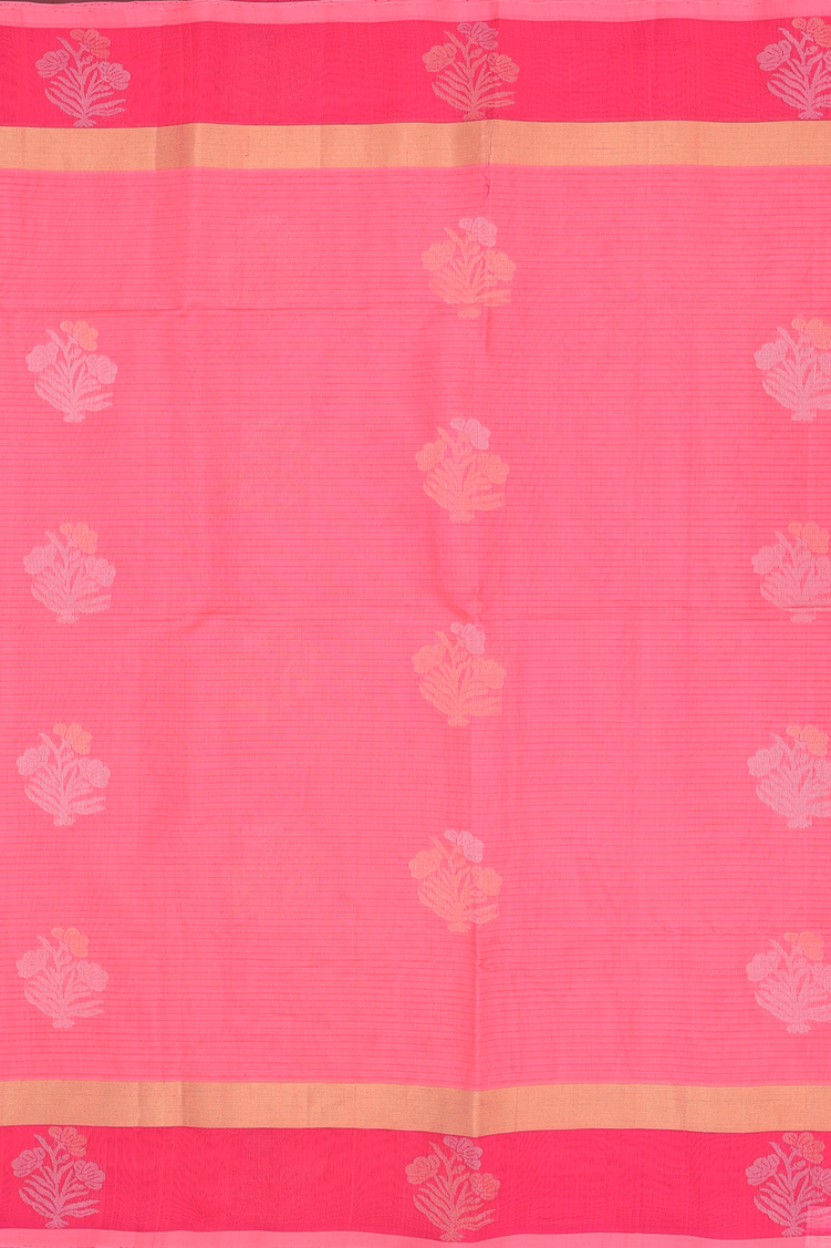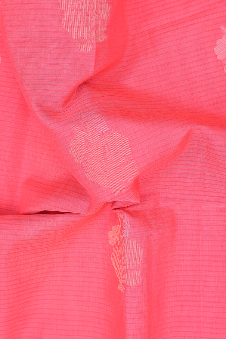 Kora Silk Cotton Saree In Coral Pink With Stripes Along Buttas