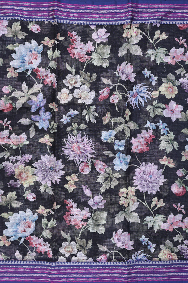 Kota Silk Saree In Black With Floral Design