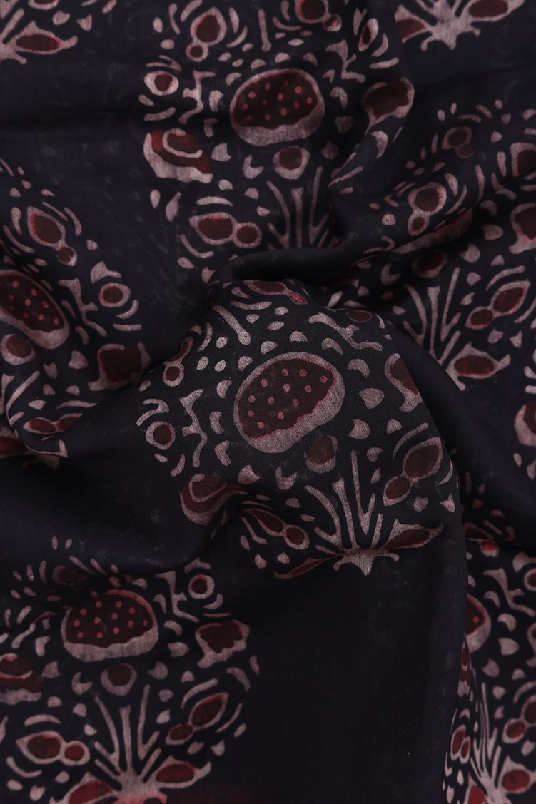 Chanderi Silk Cotton Saree In Black With Printed Design