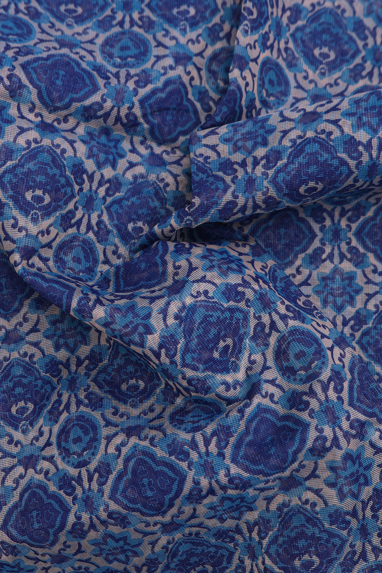 Kota Cotton Saree In Blue And Brown With Printed Design
