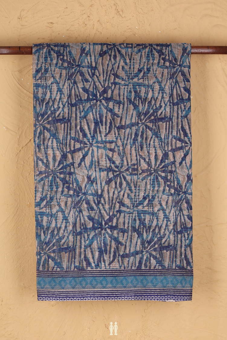 Kota Cotton Saree In Blue And Brown With Printed Design