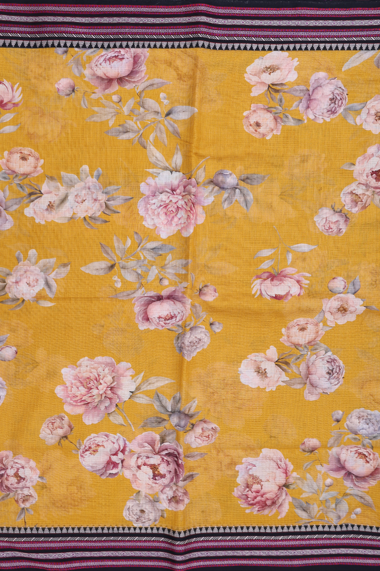Kota Cotton Saree In Mustard Yellow With Floral Design