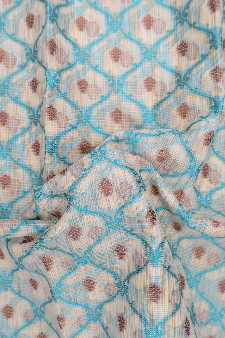 This elegant brown kota cotton saree features a delicate scallop design that adds subtle texture and charm. Crafted from breathable, lightweight fabric, it offers comfort and grace, perfect for both casual and formal occasions. The sophisticated pattern enhances its timeless appeal, making it a versatile addition to your wardrobe.