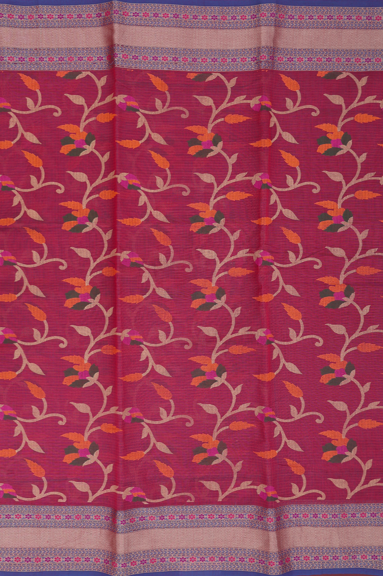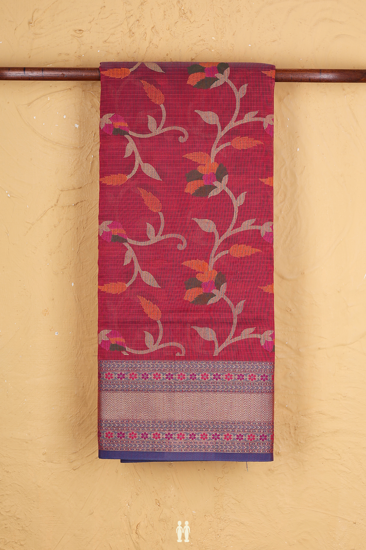 Kota Cotton Saree In Burgundy Red With Floral Design